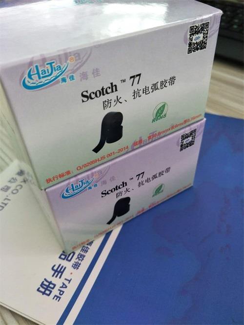 海佳Scotch77#防火、抗電弧膠帶規(guī)格厚0.76mm*50.8mm寬*6m長,專為保護所有電纜而設(shè)計。它構(gòu)成材料獨特,能遇火膨脹,在火焰與電纜之間形成一層厚的炭聚積物,這道絕緣防火墻起到隔熱層和防火板的作用,由此保護電纜或附件。