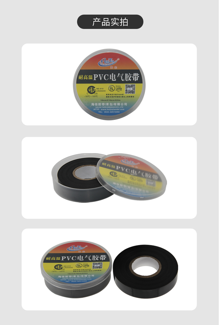 耐高溫PVC電氣膠帶是由超級(jí)耐候型薄膜,涂特種高性能壓敏膠制作而成,具有高彈性、高服帖性、耐紫外線、耐水、油、酸、堿、鹽等各種腐蝕,耐候,耐阻燃,可在低溫下使用.