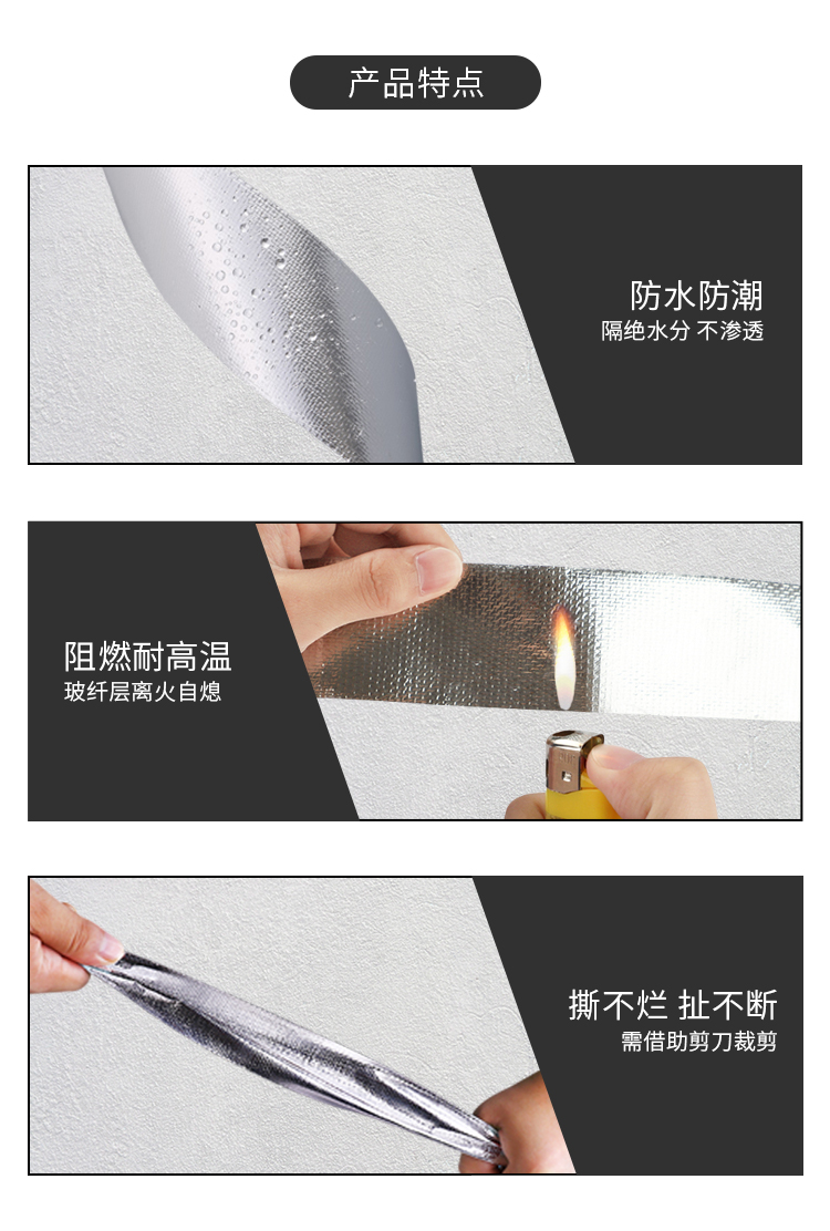 保溫膠帶包含 鍍鋁膜,薄鋁箔,厚鋁箔,玻纖布。采用15~80um的軟性鋁箔,涂以優(yōu)異的丙烯酸膠粘劑、阻燃型丙烯酸膠粘劑、合成橡膠膠粘劑,復合硅酮隔離紙而成.